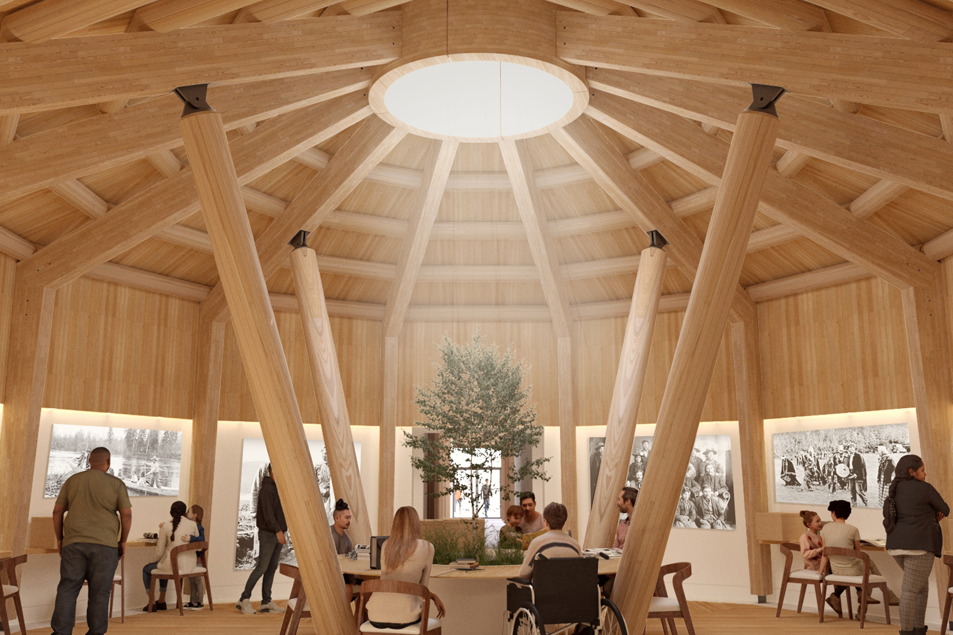 During the development of the program Circular rooms are requested. One elder wanted a circular platform and semicircle seating for ceremony and drumming. They would like a fire outside and an outdoor traditional skills space (like Kebaowek) for tanning hides, building canoes, etc. There will be several types of storage units for both documents and cultural belongings/artifacts. The document storage will be separate from the archival storage room so that the climatic conditions (especially humidity) can be managed separately.