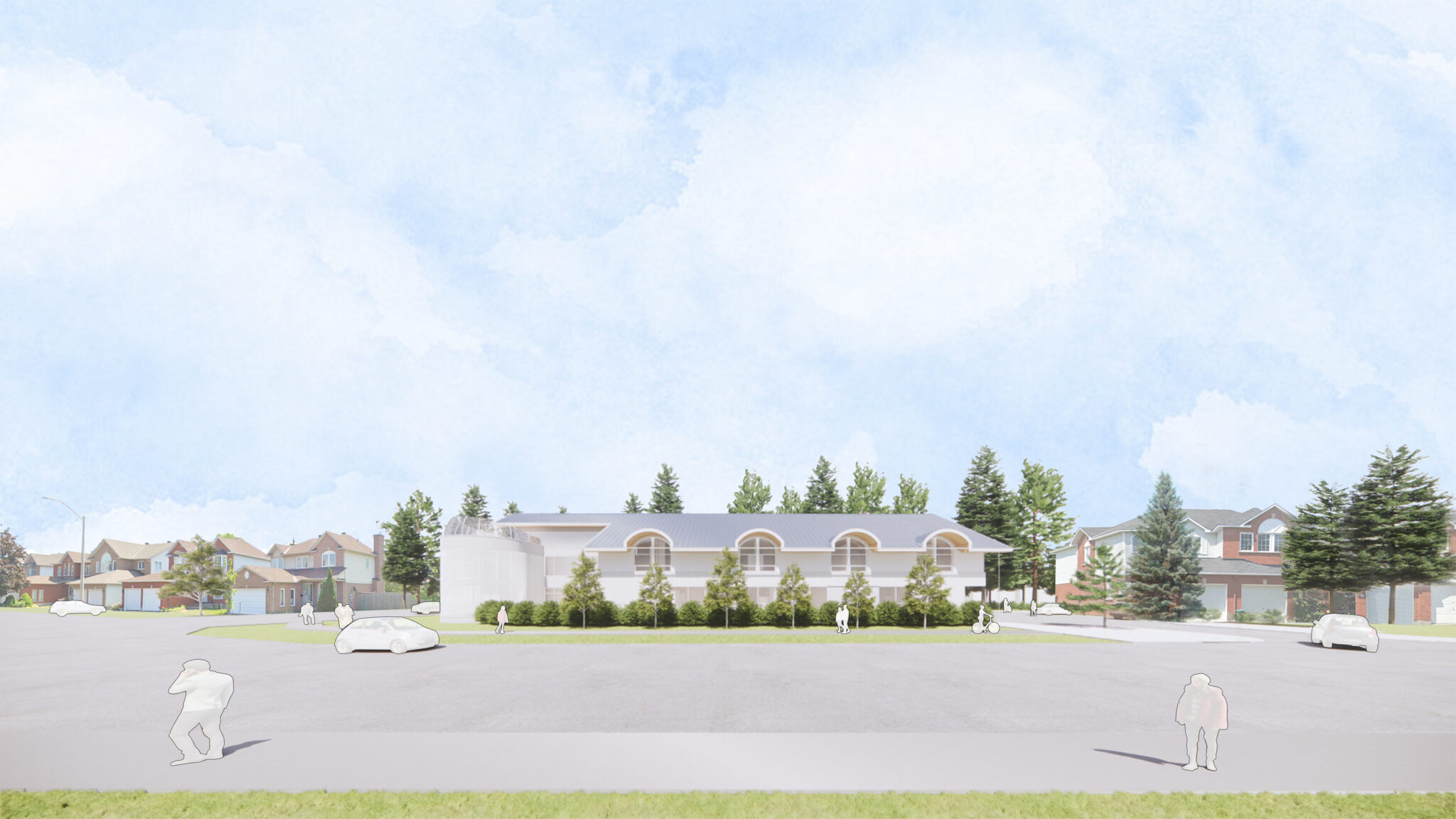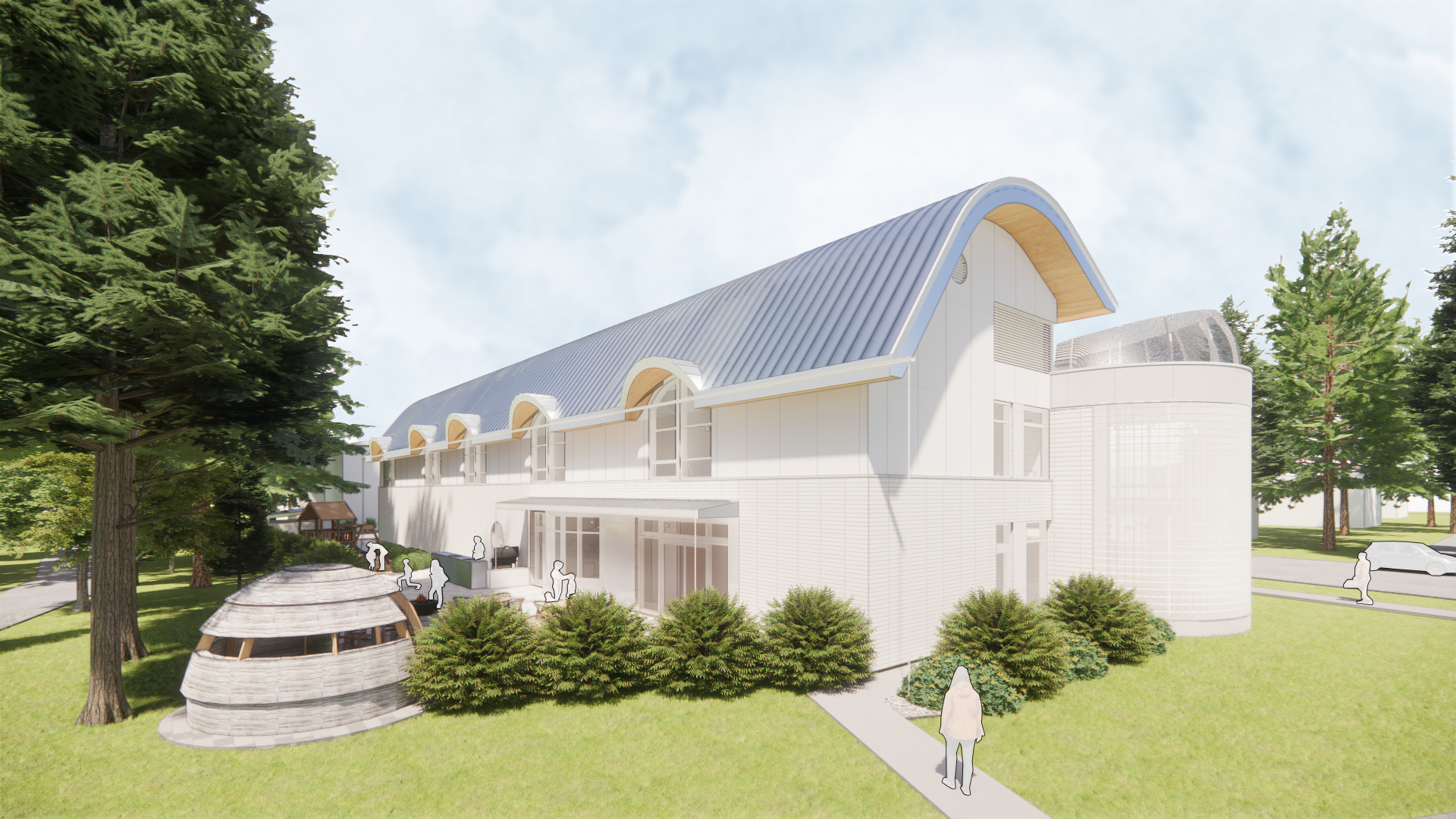The architectural essence of the Inuit Women’s Shelter is sculpted by the guiding tenets of safety, dignity, and healing, giving rise to a warm and inviting sanctuary attuned to the singular healing needs of Inuit women and their children. Cultural motifs are interwoven throughout the design, ensuring that the space mirrors and connects to heritage and traditions of the Inuit people. The structure manifests as a low-rise, two-story building, with an accessible attic dedicated to storage and service functions. This form nestles contextually within its residential environs while preserving a distinctive expression inspired by Inuit culture.