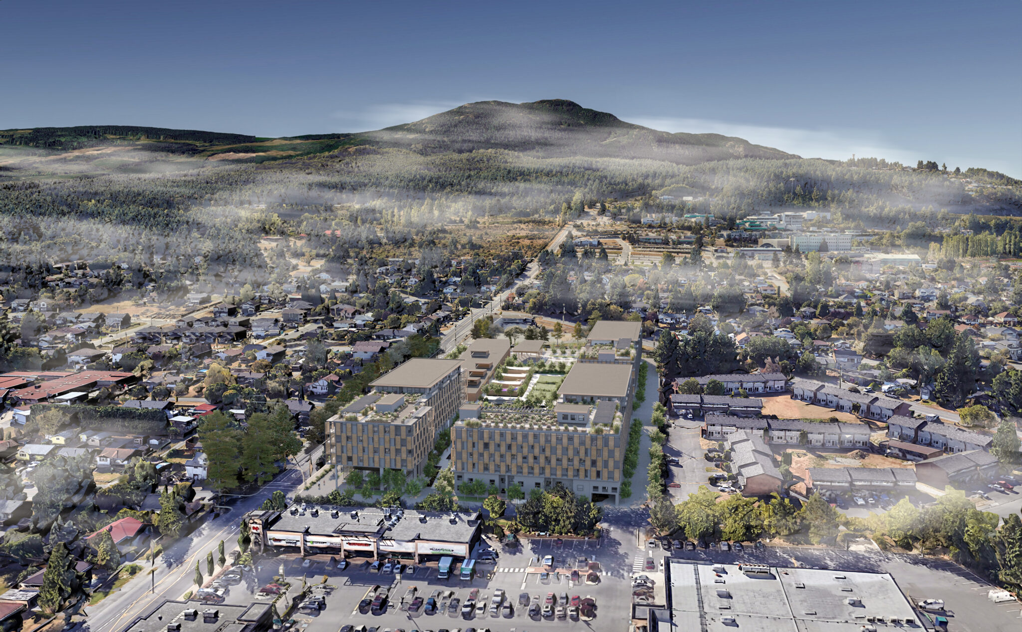 The concept of the Te’Tuxwtun Master Plan is based on the Longhouse concept at both the macro and micro scale. On the macro scale, buildings line the edge of a long green space facing the sacred Te’Tuxwtun Mountain. On the micro scale, each building is a long rectangular form evocative of the traditional pre-European Longhouse.